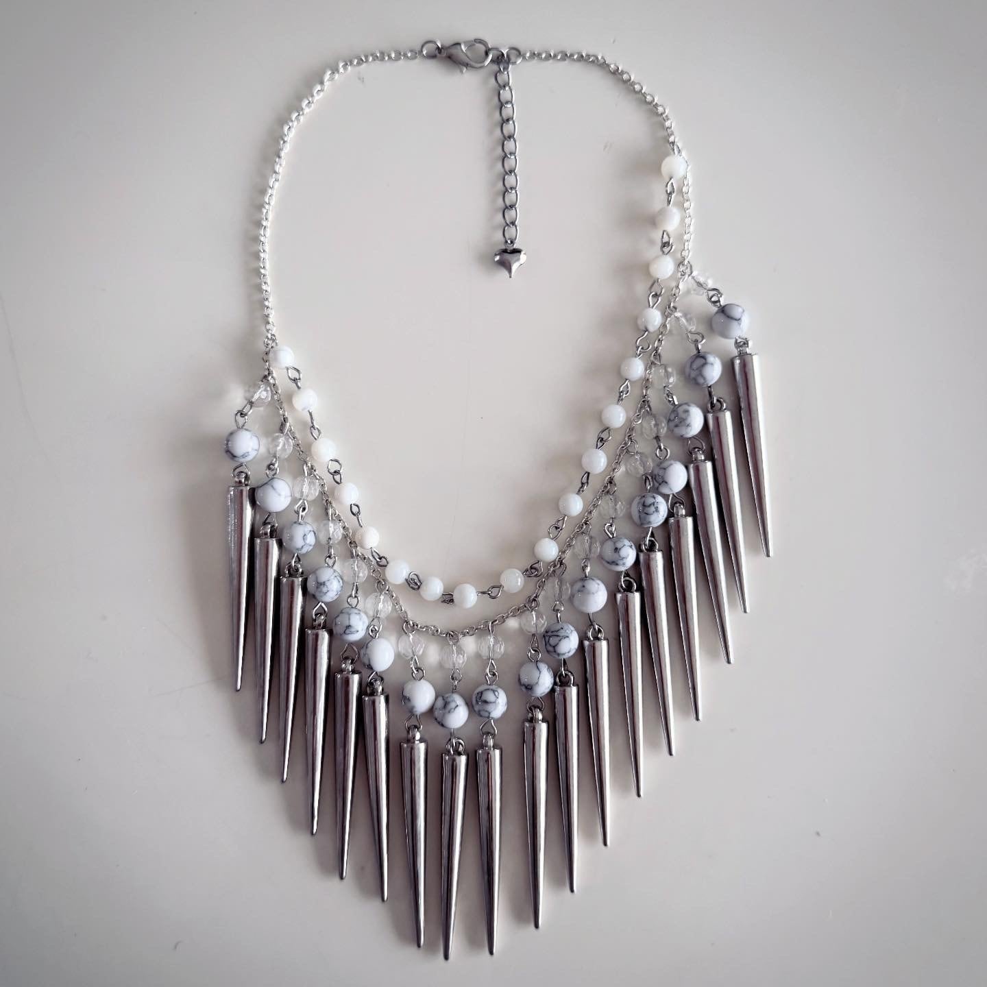 White turquoise, White howlite, Clear quartz, Shell, Brass, Stainless steel