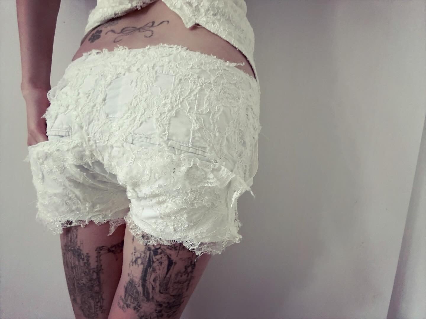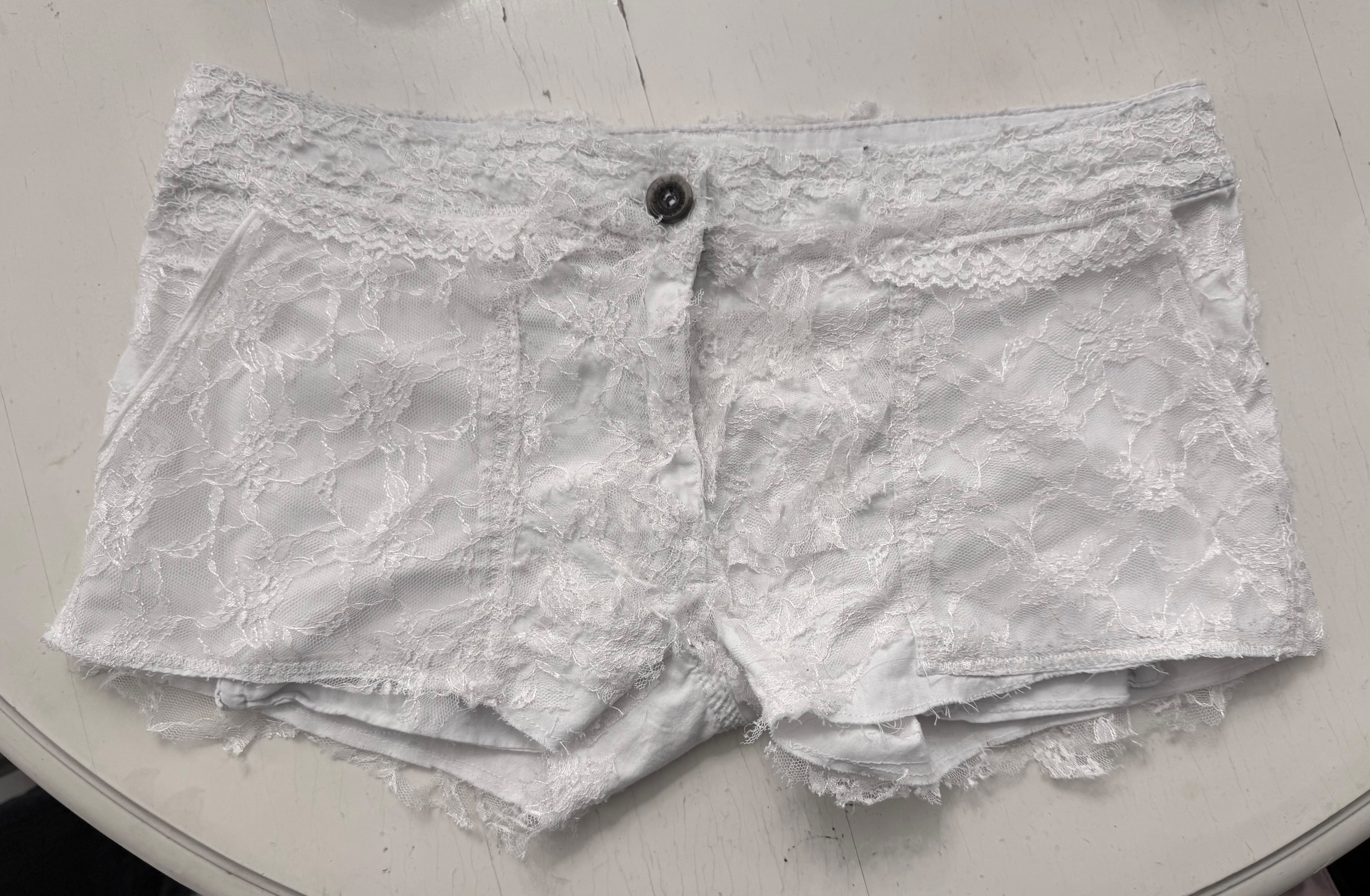 Upcycled lace shorts