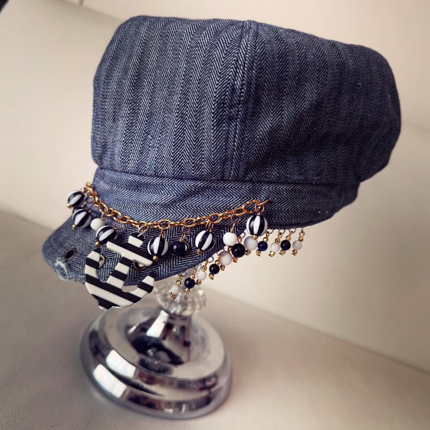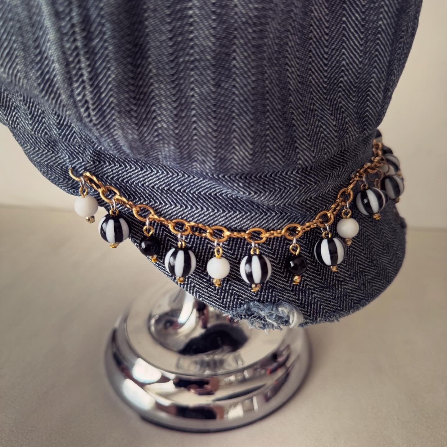 denim casquette with beads